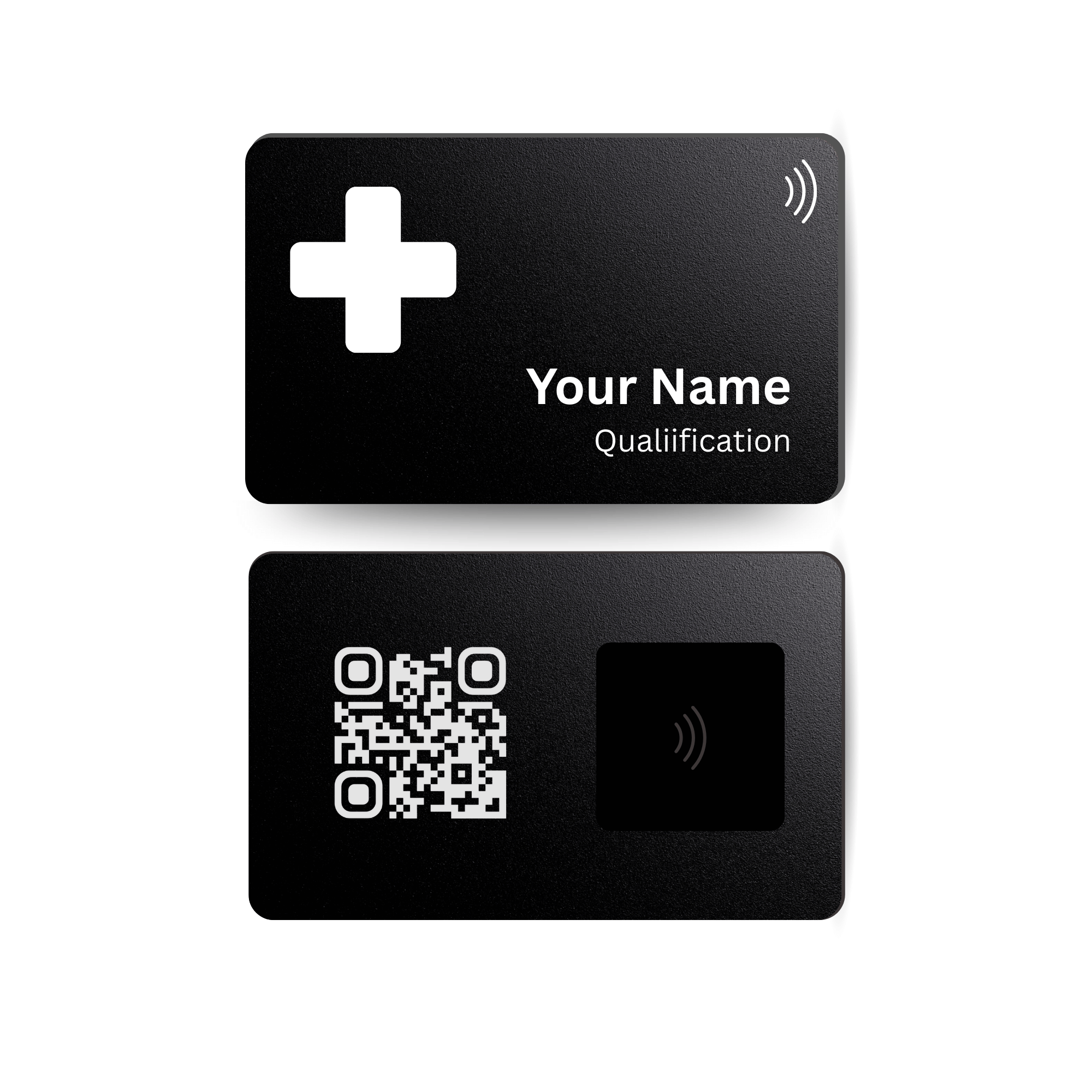 Ideal for clinics, hospitals, conferences, and professional networking, the TapMo Black Metal NFC Card works seamlessly with both Android and iPhone devices - no app required for the receiver. Durable, reusable, and eco-friendly, it replaces traditional paper visiting cards while delivering a strong and confident medical presence.