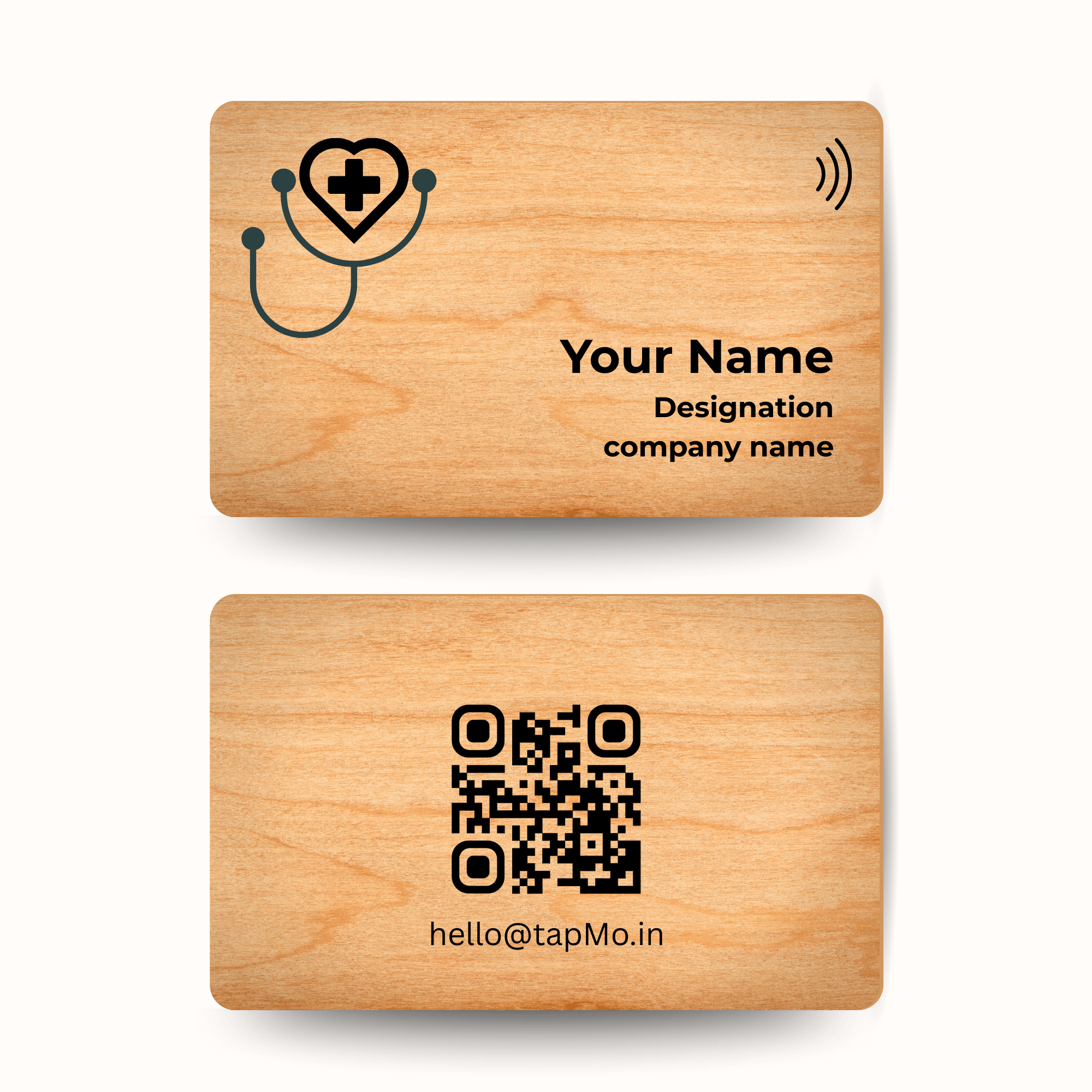 The TapMo Engraved Wooden NFC Card for Doctors is a premium digital visiting card crafted for doctors and healthcare professionals who want a sophisticated, timeless, and trustworthy professional identity. Made from high-quality natural wood and finished with precision engraving, this NFC-enabled card allows doctors to instantly share their contact details, clinic or hospital address, specialization, and professional profiles with just one tap.