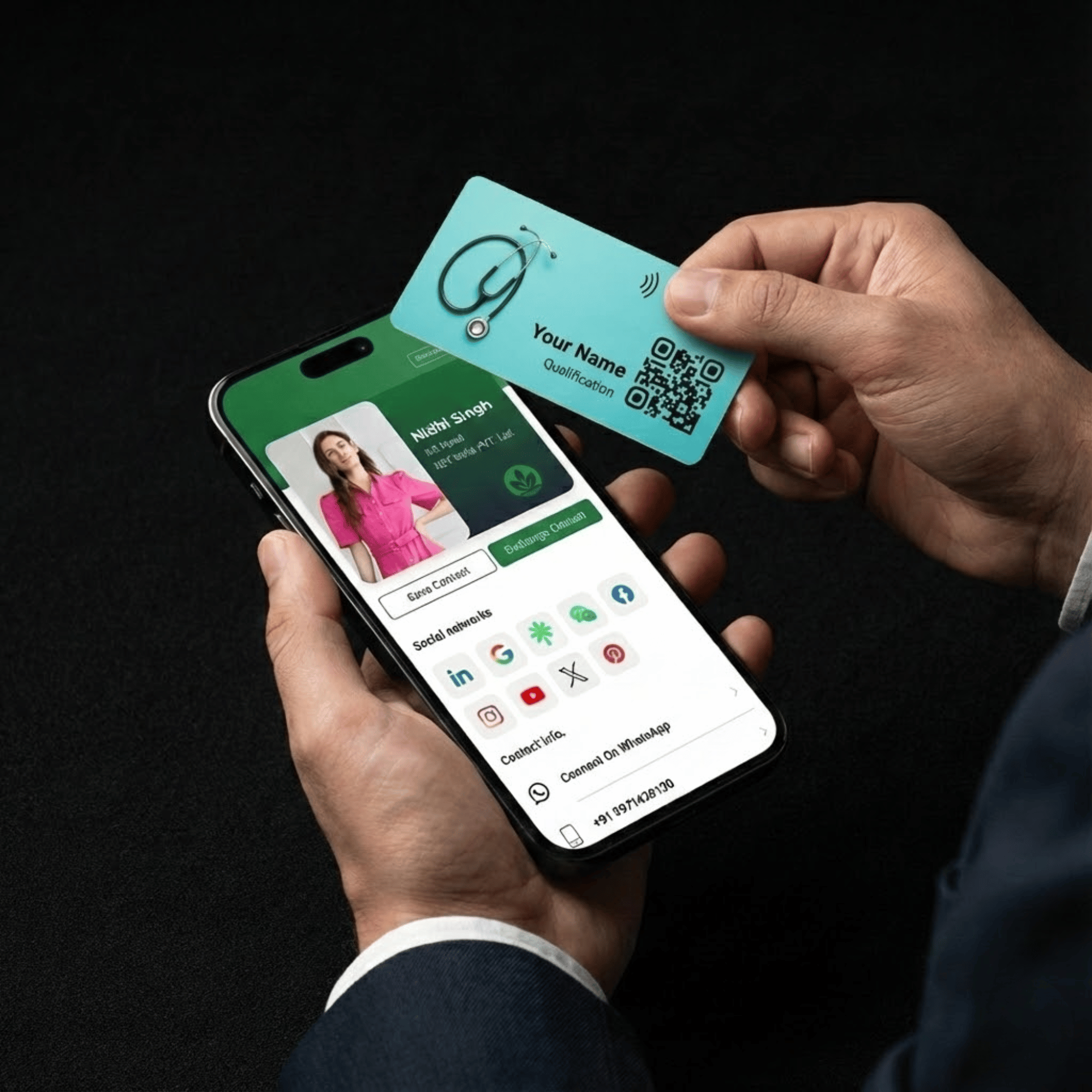 The TapMo PVC NFC Card for Doctors is a lightweight, affordable digital visiting card ideal for daily clinical use. Doctors can instantly share contact details, clinic location, and appointment info with one tap.