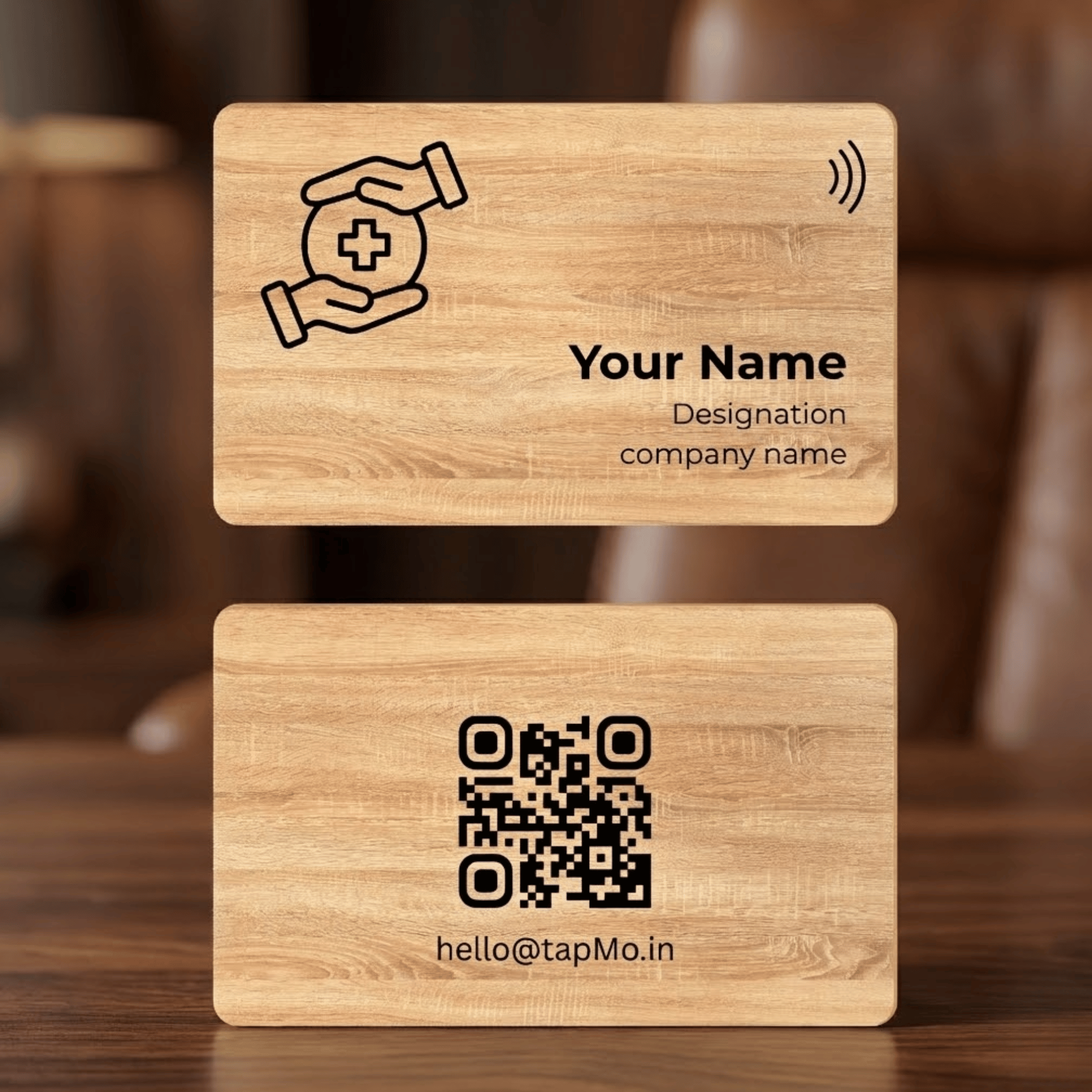 The TapMo Wooden NFC Business Card for Clinics is a premium and eco-friendly digital visiting card designed for clinic owners, doctors, and healthcare professionals who want a warm, trustworthy, and professional identity. Crafted from natural wood and embedded with smart NFC technology, this card allows instant sharing of clinic details, doctor contact information, specialization, consultation timings, and professional profiles with just one tap.