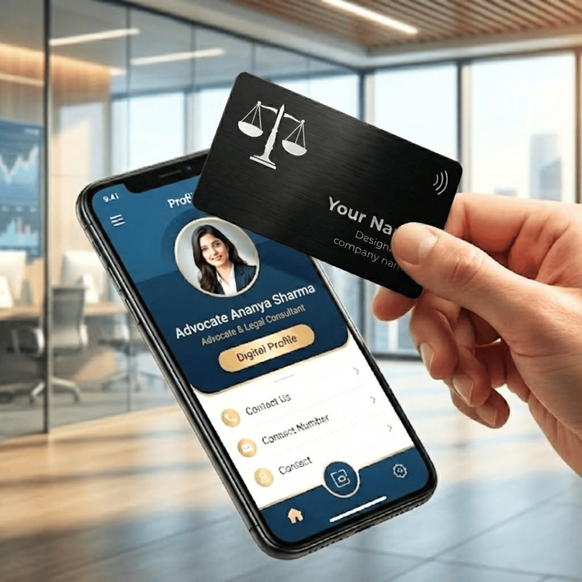 The TapMo Custom Engraved Metal NFC Card for Advocates is crafted for legal professionals who want a bold, lasting, and highly professional identity. Made from premium metal and finished with precision engraving, this NFC-enabled digital visiting card allows advocates and lawyers to instantly share their contact details, chamber address, practice areas, and professional profiles with a single tap.