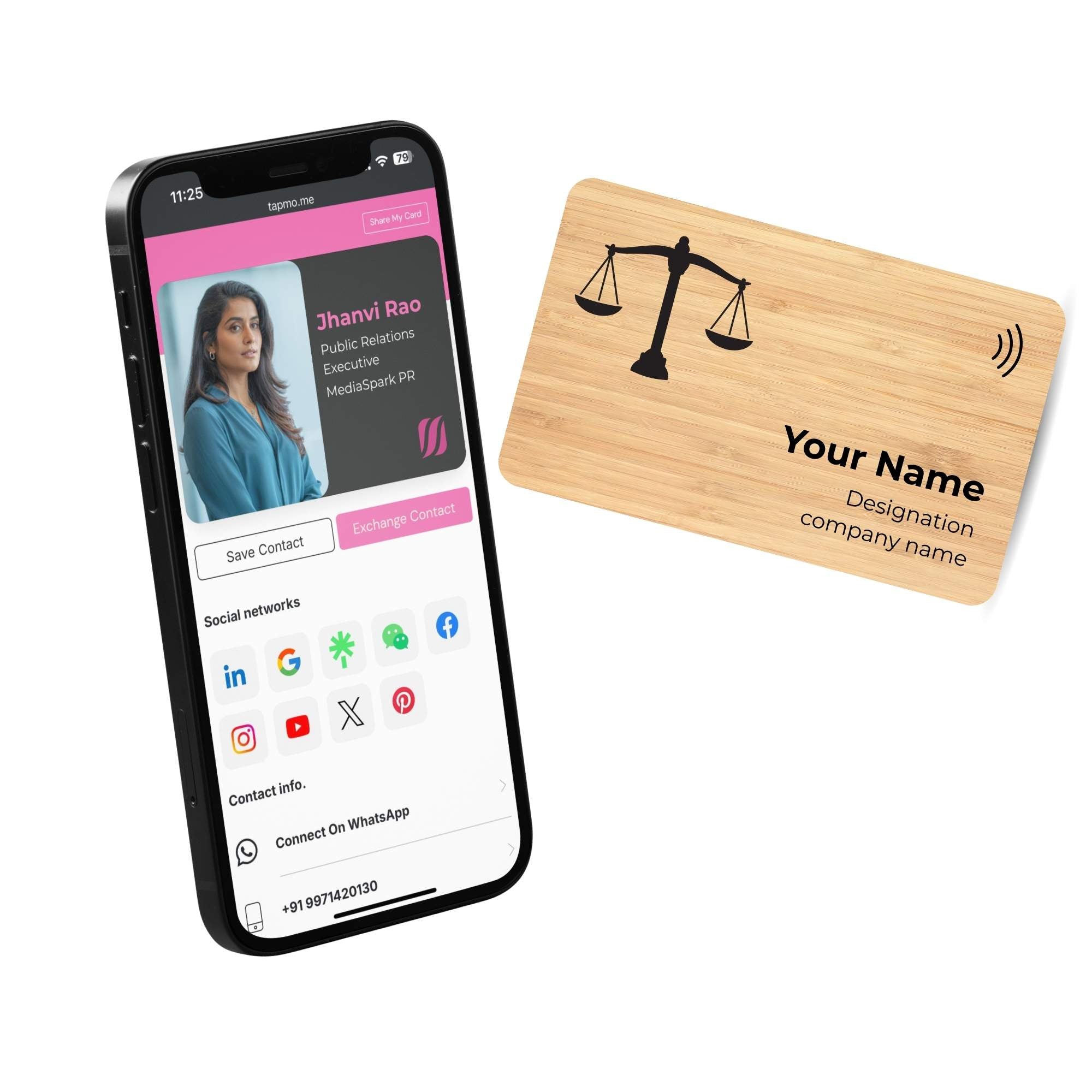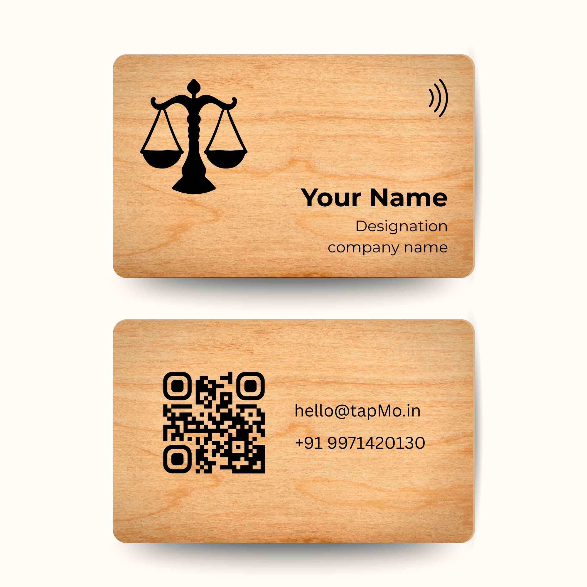 The TapMo Luxury Wooden NFC Business Card β Legal Edition is crafted for lawyers, advocates, and legal consultants who want an elite, sophisticated, and memorable professional identity. Made from premium-grade natural wood with a luxury finish and embedded with advanced NFC technology, this card enables instant sharing of your contact details, chamber address, practice areas, and professional profiles with just one tap.