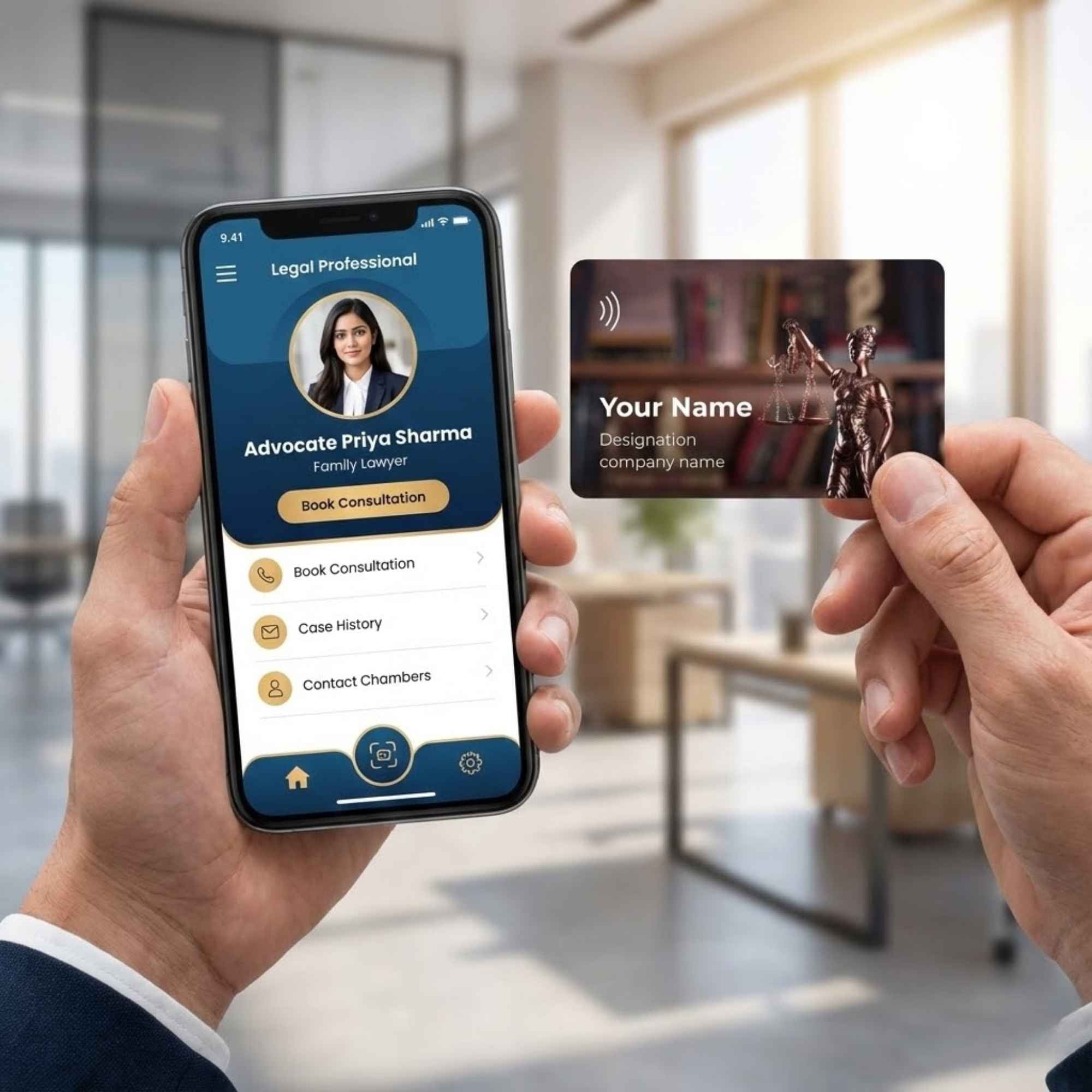 Minimal Design for Lawyers β Clean and professional PVC NFC visiting card for advocates and legal professionals.