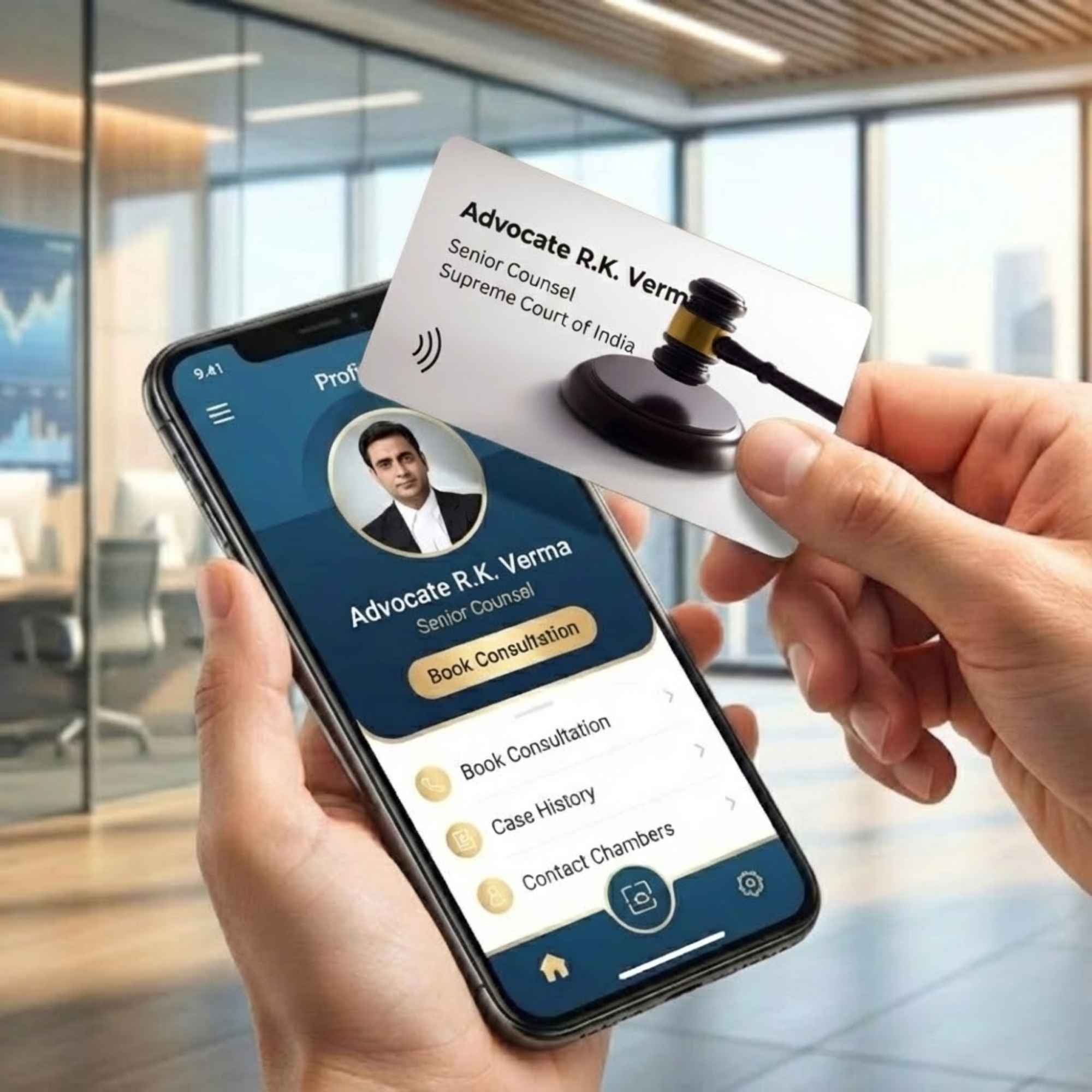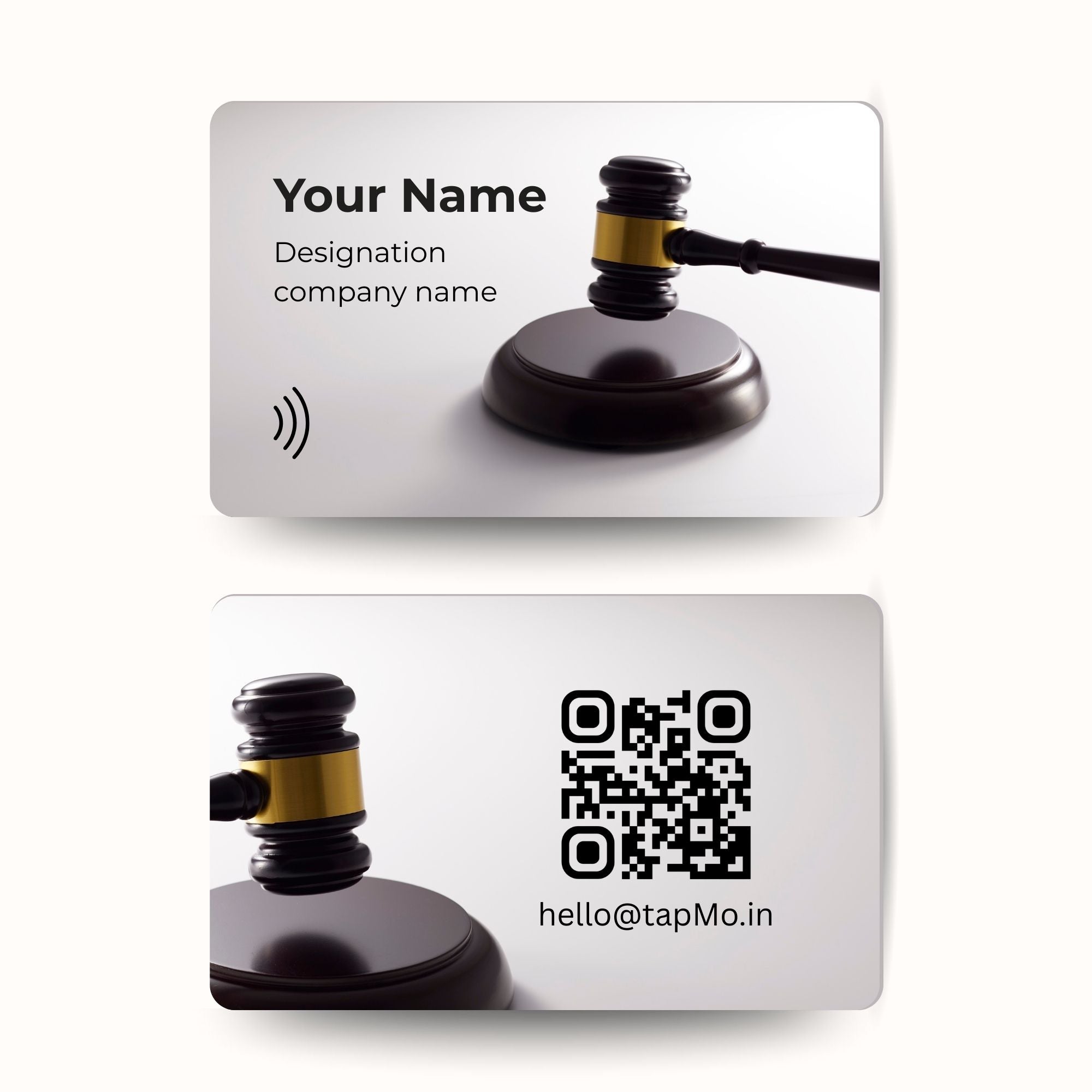 Designed for Advocates & Lawyers β Professional white PVC NFC card tailored for legal professionals.