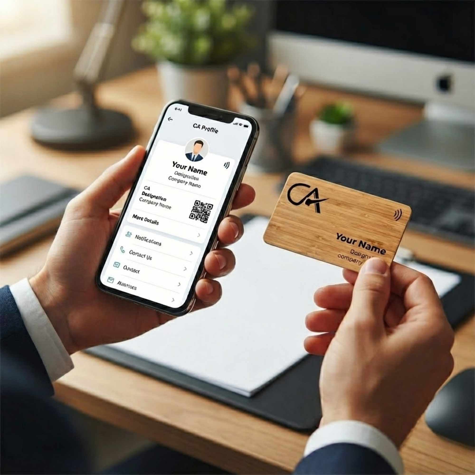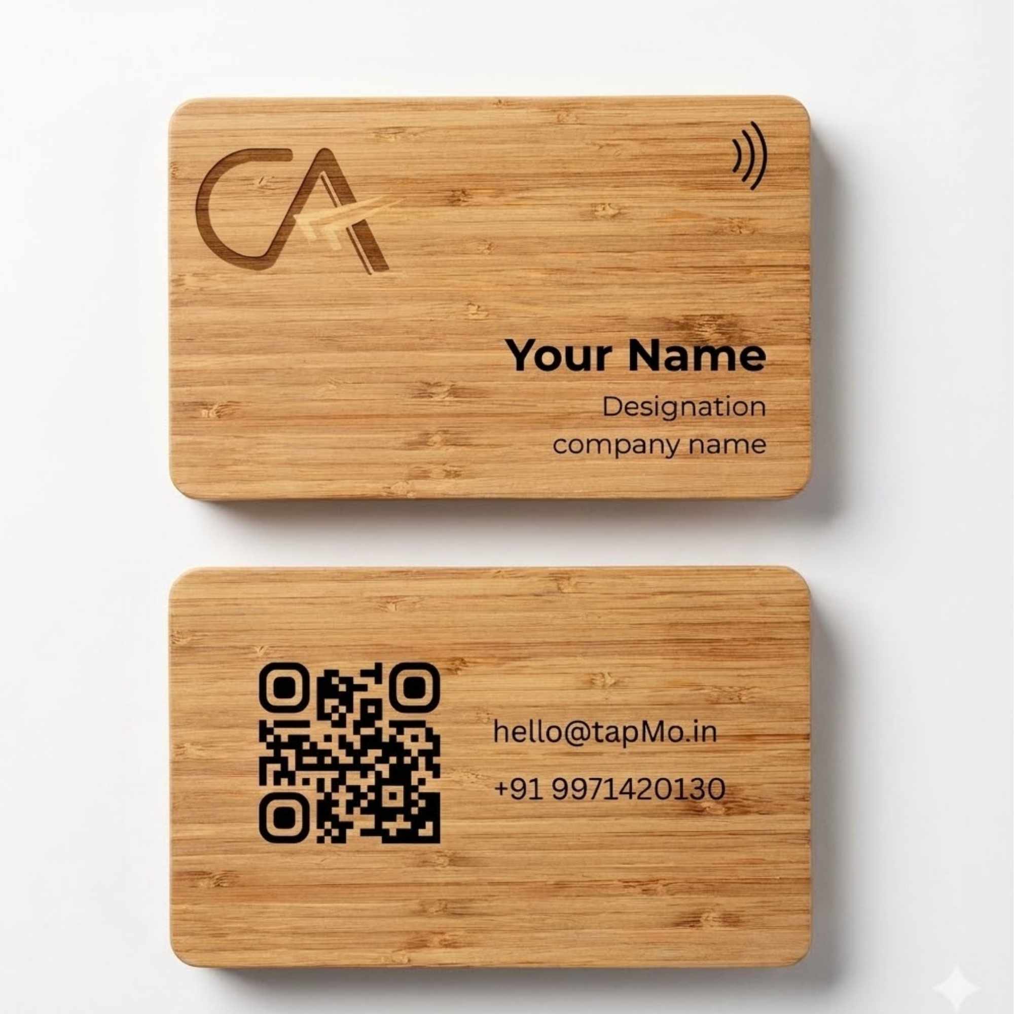The TapMo Engraved Wooden NFC Card for Chartered Accountants is a premium, eco-luxury digital visiting card designed for CAs, audit partners, tax consultants, and senior finance professionals who value permanence, elegance, and trust. Crafted from high-quality natural wood and finished with precision engraving, this NFC-enabled card allows instant sharing of contact details, office address, services, and professional profiles with just one tap.