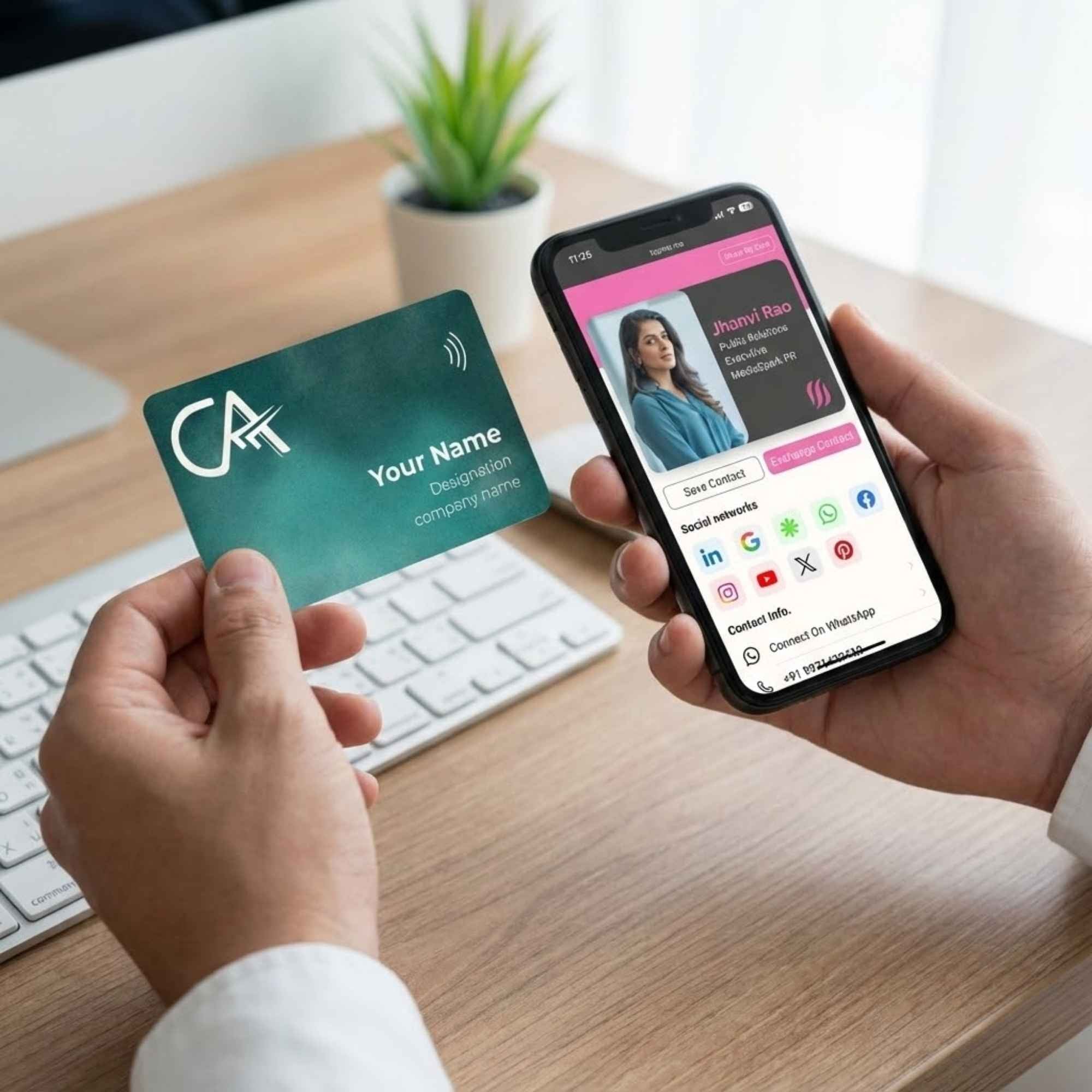 Ideal for individual CAs, audit professionals, consultants, and firm staff, this minimal NFC card works seamlessly with Android and iPhone devices - no app required for the receiver. Lightweight, durable, reusable, and eco-friendly, it replaces traditional paper visiting cards while maintaining trust and professionalism.