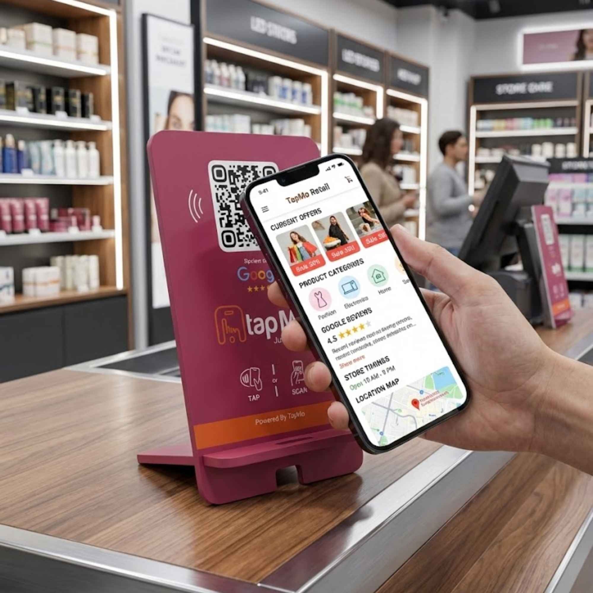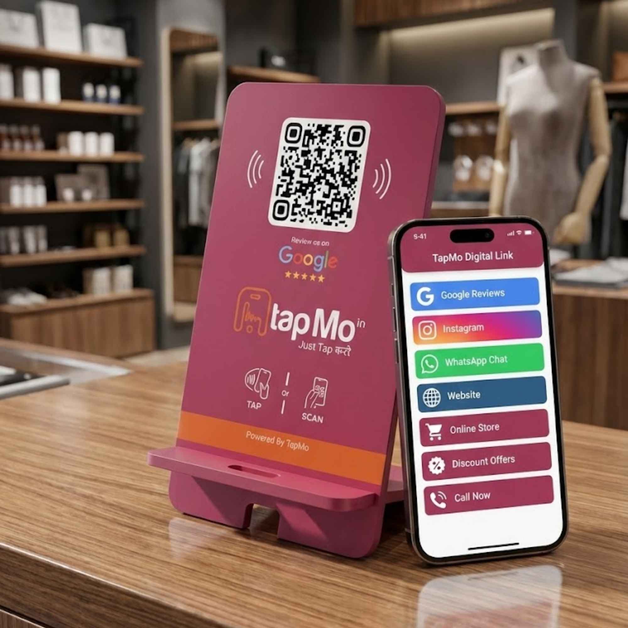 Retail businesses thrive on trust, visibility, and repeat customers. The TapMo Smart NFC Standee for Retail Shops helps store owners collect Google reviews, share offers, and guide customers to websites or WhatsApp instantly at the billing counter.